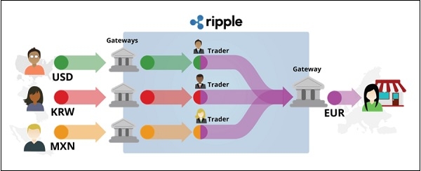 閘道器充當傳送和接收貨幣的信用中介,並充當雙方之間信任鏈中的環節。任何人都可以註冊並開啟閘道器,充當交換貨幣的中介。XRP或俗稱瑞波幣的加密貨幣是一種橋接貨幣,它不區分法定貨幣和加密貨幣,並且使跨多個網路的交換非常容易。