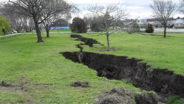當地震沿著斷層移動時,地面會開始破裂,將地表斷裂成小塊,從而在地球表面形成裂縫。