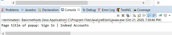 System.out.println("Page title of popup: "+ driver.getTitle());