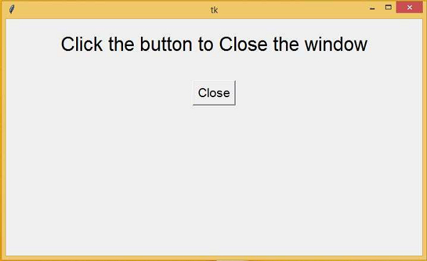 由於 Tkinter 屬性是獨立的,因此我們可以建立一個單獨的方法,使用按鈕關閉視窗。