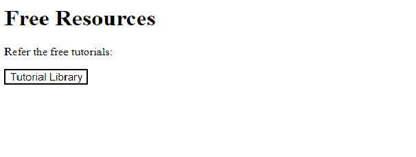 <!DOCTYPE html> <html> <head> <title>Button Link</title> <style> .mybtn { background-color: white; text-align: center; display: inline-block; font-size: 15px; cursor: pointer; } </style> </head> <body> <h1>Free Resources</h1> <p>Refer the free tutorials:</p> <a href='https://tutorialspoint.tw/tutorialslibrary.htm'> <button class="mybtn"> Tutorial Library </button> </a> </body>