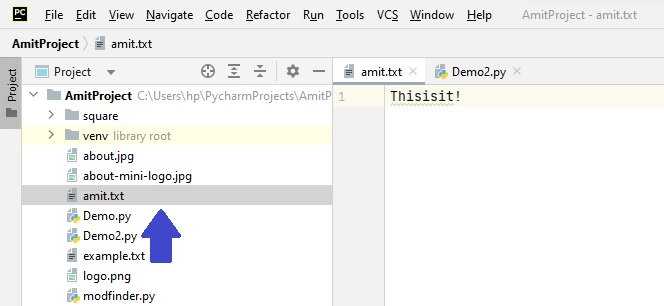 讓我們先建立一個檔案並讀取內容:我們將顯示文字檔案的內容。為此,讓我們先建立一個名為 amit.txt 的文字檔案,內容如下: