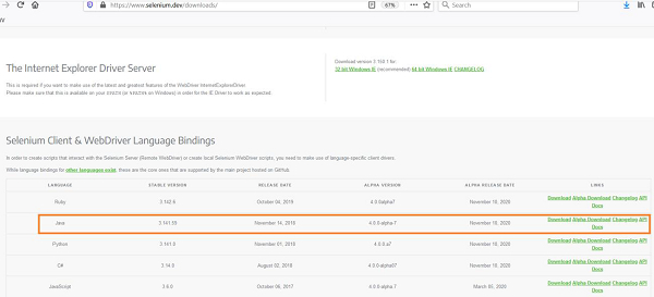 導航到連結:https://selenium.programming.tw/downloads/ 並下載Selenium java 客戶端驅動程式 zip 檔案。