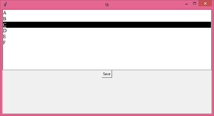 如果我們執行以上程式碼,它將顯示一個包含字母列表 (A-F) 的視窗。