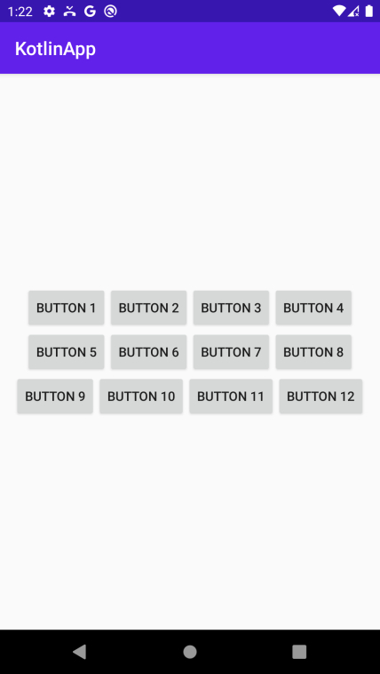 此示例演示如何使用 Kotlin 在多行佈局中逐個以程式設計方式新增按鈕。