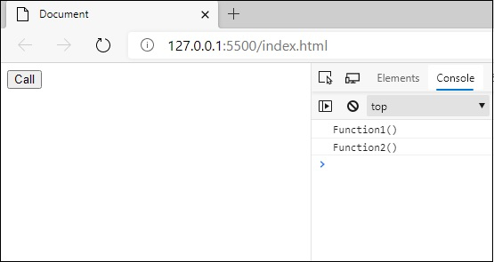 上面,我們設定了一個“onclick”下的函式,以呼叫其他兩個函式 −