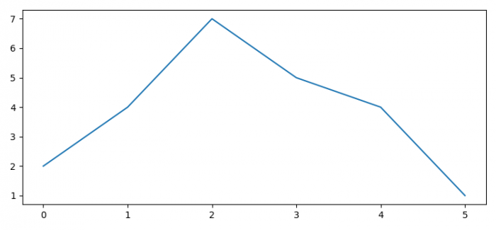 In [1]: %matplotlib auto Using matplotlib backend: Qt5Agg In [2]: import matplotlib.pyplot as plt In [3]: plt.rcParams["figure.figsize"] = [7.50, 3.50] ...: plt.rcParams["figure.autolayout"] = True In [4]: fig, ax = plt.subplots() In [5]: ax.plot([2, 4, 7, 5, 4, 1]) Out[5]: [<matplotlib.lines.Line2D at 0x7f4270361c50>] In [6]: fig.show()