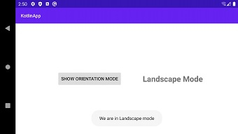 Toast.makeText(this@MainActivity, "We are in Landscape mode",
