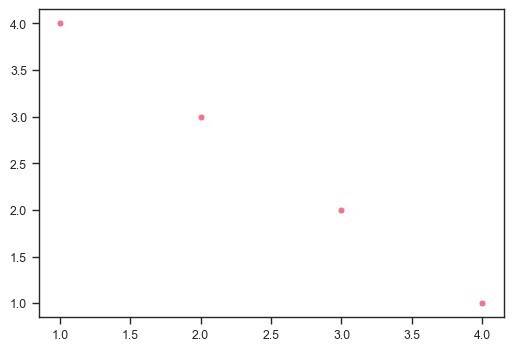 import seaborn as sns import matplotlib.pyplot as plt # Create a figure with a specific size plt.figure(figsize=(8, 6)) x = [1,22,10] y = [4,56,67] # Create a plot using Seaborn sns.scatterplot(x) plt.show()