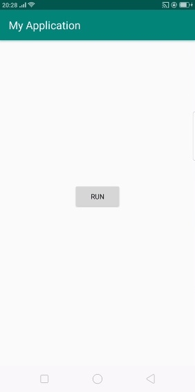 <?xml version="1.0" encoding="utf-8"?> <LinearLayout xmlns:android="http://schemas.android.com/apk/res/android" android:id="@+id/parent" xmlns:tools="http://schemas.android.com/tools" android:layout_width="match_parent" android:layout_height="match_parent" tools:context=".MainActivity" android:gravity="center" android:orientation="vertical"> <Button android:id="@+id/runOn" android:text="Run" android:layout_width="wrap_content" android:layout_height="wrap_content" /> <TextView android:id="@+id/text" android:textSize="20sp" android:layout_width="wrap_content" android:layout_height="wrap_content" /> </LinearLayout>