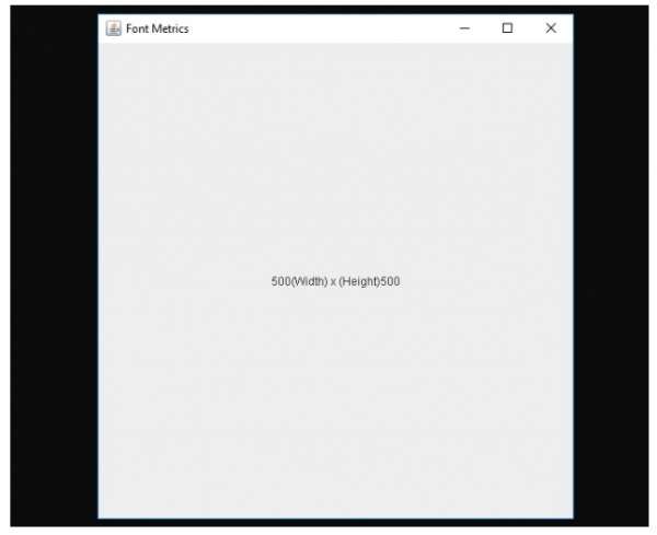 Graphics2D graphics = (Graphics2D) gp.create(); String str = getWidth() + "(Width) x (Height)" + getHeight(); FontMetrics m = graphics.getFontMetrics();