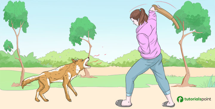 繼續避免眼神接觸,表現出無所畏懼的樣子。如果狗靠近你並開始咬你,反擊。擊打或踢狗,瞄準頸部或鼻子。在反擊的同時大聲喊叫求救是可以的。希望有人會聽到並幫助你。