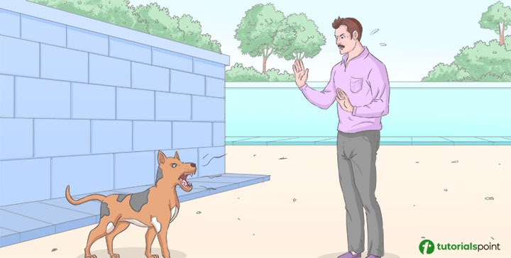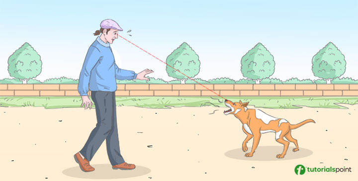 像任何其他動物一樣,狗也能感覺到恐懼。因此,記住要保持冷靜和鎮定。深呼吸,避免與狗進行眼神接觸。儘量保持身體靜止,挺直站立,雙手放在身體兩側。避免在狗攻擊的情況下變得激動。不要跑或尖叫。記住保持不動;狗可能會失去興趣並走開。
