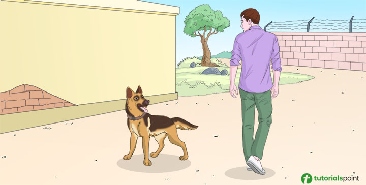 此時,狗可能會靠近你,嗅你,然後離開。當它試圖靠近你時,不要與狗搏鬥。耐心等待狗走開或跑開。在狗離開之前不要改變姿勢,因為這可能會再次激怒它。因此,在狗完全離開現場之前保持不動。