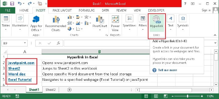 大多數程式,特別是使用超連結來導航到特定的網頁。但是,Excel 為您提供了更多關於您可以使用超連結做什麼的可能性。Excel 的超連結遠優於其他程式提供的超連結。Excel 中的超連結功能可用於連結到任何指定的 Web 位置。但是,它還可以用於訪問當前檔案中的任何特定位置(單元格)、啟動新檔案或移動到另一個 Excel 電子表格。