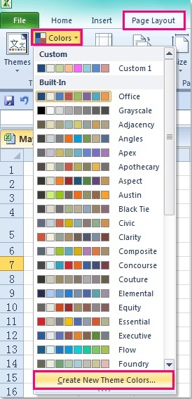 單擊功能區中的“頁面佈局”選項卡,然後單擊“顏色”>“建立新的主題顏色”。
