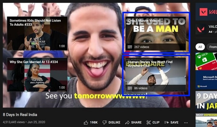 就像連結影片一樣,如果您連結您的播放列表,它將增加流量。播放列表非常適合對特定主題感興趣並希望檢視更多相同主題影片的觀看者。當有人觀看播放列表中的一個影片時,播放列表中的影片會自動繼續播放。這將帶來更多觀看次數。Nas Daily 在結束螢幕上推廣了他的兩個播放列表。