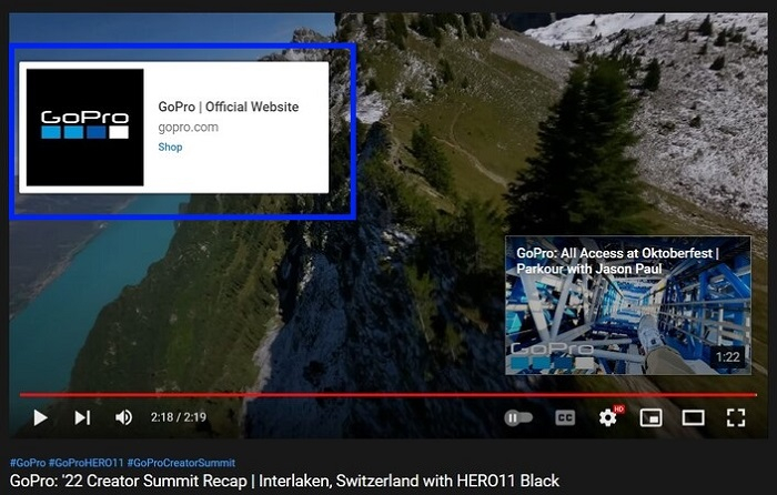 例如,在這個影片中,GoPro 為其觀看者添加了一個連結,讓他們去購買最新的產品,他們為捆綁包提供了 10% 的折扣。點選連結。