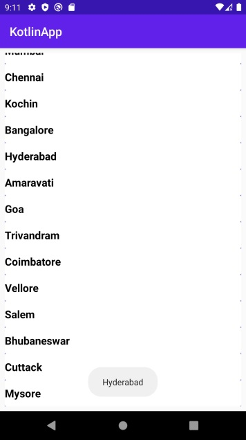 Toast.makeText(applicationContext, cities[position], Toast.LENGTH_SHORT).show()
