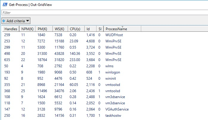 PS C:\> Get-Process | Out-GridView
