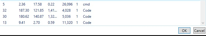 NPM(K) PM(M) WS(M) CPU(s) Id SI ProcessName ------ ----- ----- ------ ----- -- ----------- 5 2.36 17.58 0.22 26096 1 cmd