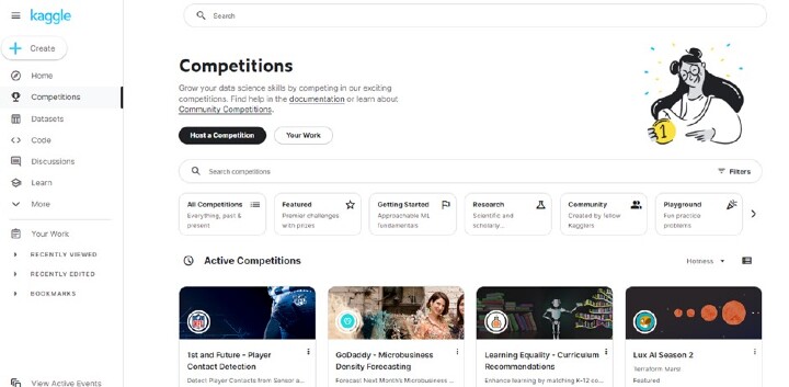 Kaggle 的 社群競賽 提供了一個磨練技能的絕佳機會,透過解決基於現實世界資料集的問題來提升能力。這有助於您獲得實踐經驗,同時與志趣相投的愛好者建立聯絡和合作。重要的是要識別並選擇最符合您技能組合的競賽;您可以透過檢視競賽詳情來做到這一點。好處是,您可以在過程中贏得獎品和獎勵。但請始終記住,您的首要目標應該是首先解決問題。每個競賽都有自己的一套規則和指南,以確保公平的環境,因此請確保也檢視這些規則和指南。