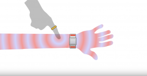 如上所述,電極確定手指沿前臂的位置,而手指的觸控是透過沿皮膚向手錶傳送電訊號來實現的,皮膚充當物理波導。