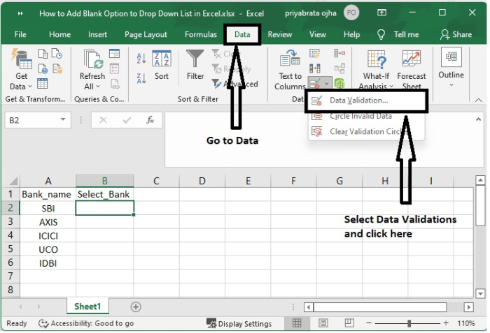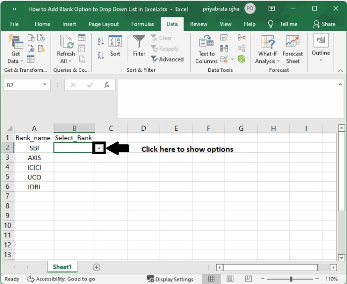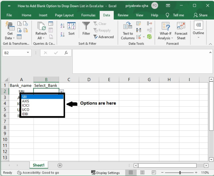 讓我們看看您可以使用哪些方法將該空白值新增到資料驗證的下拉列表中。