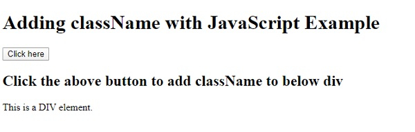 要使用 JavaScript 將一個類名新增到元素,程式碼如下 -