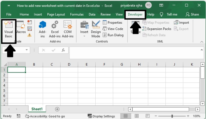 儲存檔案,然後轉到“開發工具”選單並選擇“Visual Basic”。