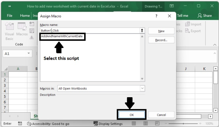 將分配的宏指令碼放在此按鈕中。然後按“確定”。