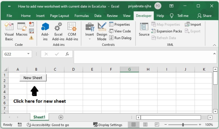 您可以將此工作表從例如“Sheet1”重新命名為“當前日期”。
