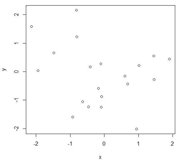 > x<-round(rnorm(20),2) > y<-round(rnorm(20),2) > plot(x,y)