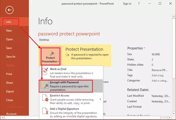 如何為 MS PowerPoint 簡報新增和刪除加密?