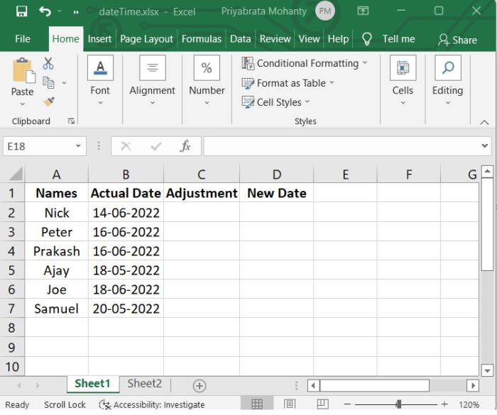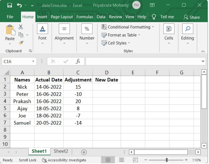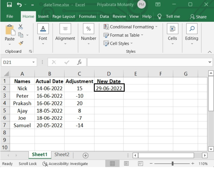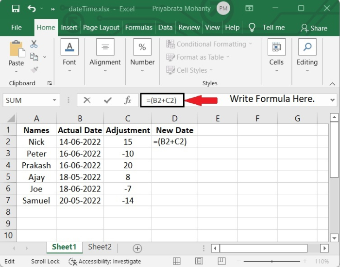 現在我們將使用以下公式來建立“新日期”。