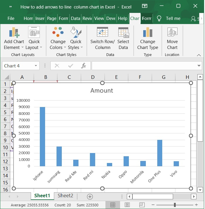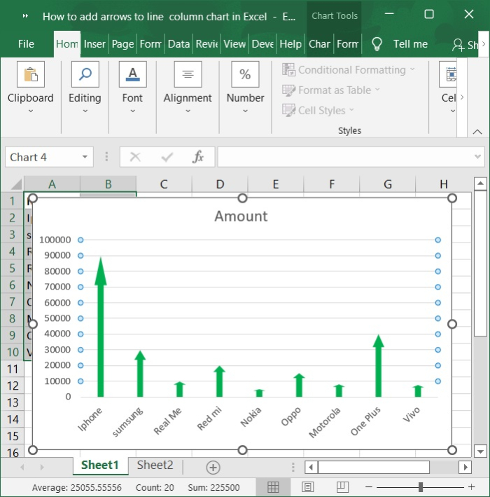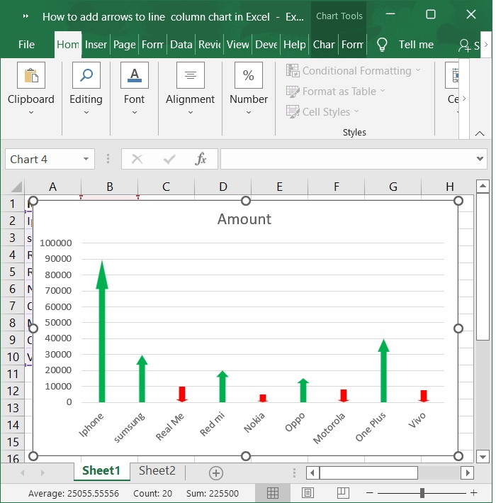 如果您的工作表包含柱狀圖或線形圖,您可能需要向柱狀圖新增箭頭以顯示值之間在增加或減少方面的相互關係。事實上,沒有直接的方法可以向柱形圖中新增箭頭;但是,您可以繪製箭頭形狀並將它們複製到柱狀圖中。在本文中,我將討論向線形圖或柱狀圖新增箭頭的過程。