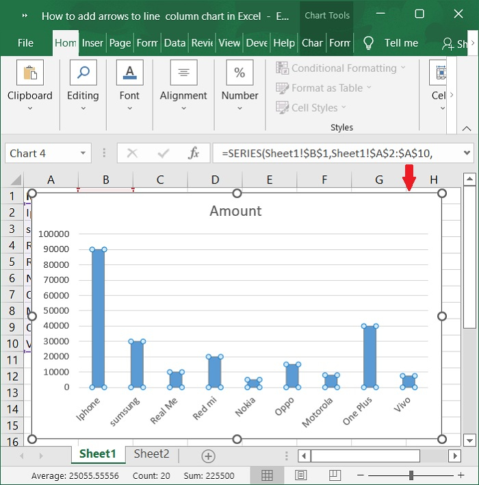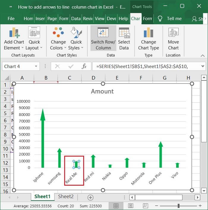 選擇要使用的箭頭,然後按Ctrl + C複製它。然後,單擊圖表中的一個列以選擇所有列。以下是相同的螢幕截圖。