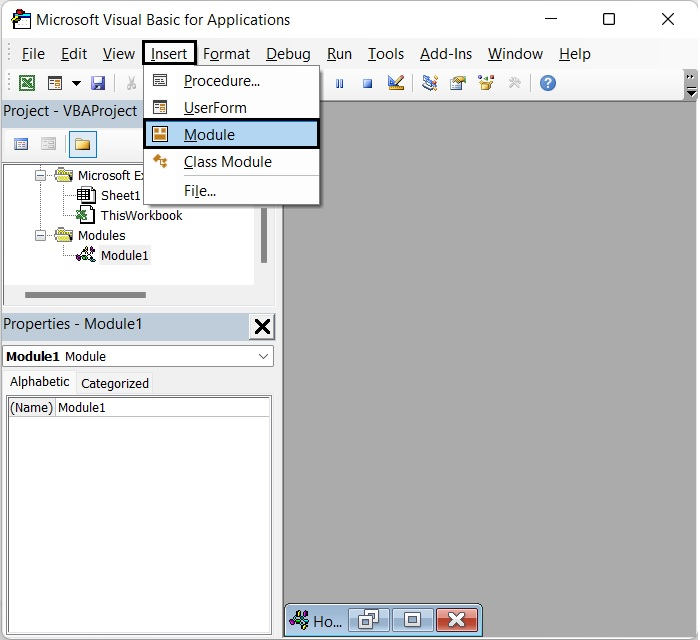 開啟模組視窗後,在其中鍵入以下 VBA 程式碼。