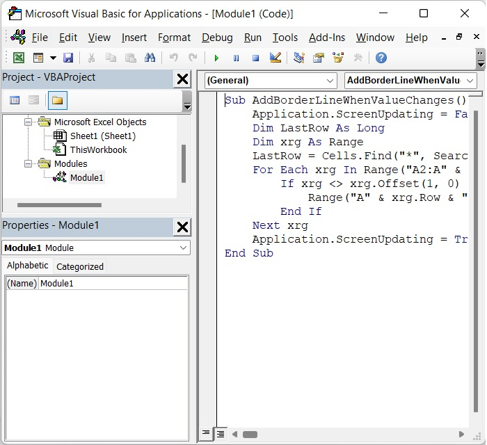 Sub AddBorderLineWhenValueChanges()