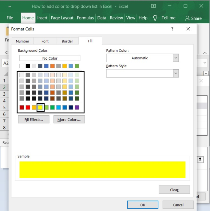 然後單擊填充選項卡,選擇你喜歡的顏色。