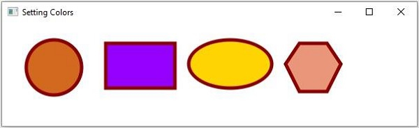 使用 setFill() 和 setStroke() 方法可以為 JavaFX 中的節點新增顏色。setFill() 方法為節點的表面區域新增顏色,而 setStroke() 方法為節點的邊界應用顏色。