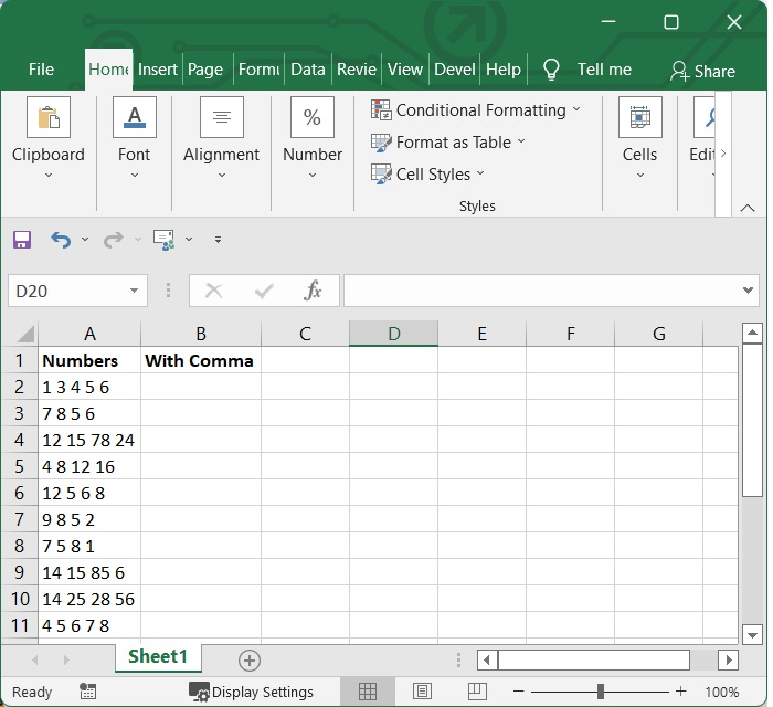 當您處理電子表格資料中的大量單元格時,可能需要在單個單元格內的某些位置手動插入逗號。當您使用在 Excel 中隨機生成的列表中的數字時,資料中通常沒有逗號。這是因為 Excel 不會自動插入逗號。在從文字編輯器傳輸資料的情況下,這一點尤其重要。但是,當您必須處理大量資料時,您必須找到更好的方法來執行此操作,或者設計不同的技術來手動執行此操作。無論哪種方式,您都必須找到解決方案。