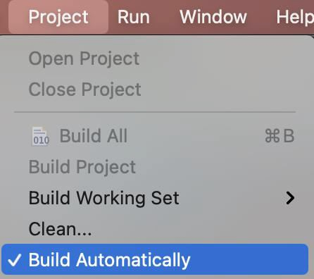 步驟 3− 單擊“專案”選單,然後選擇“自動構建”選項。