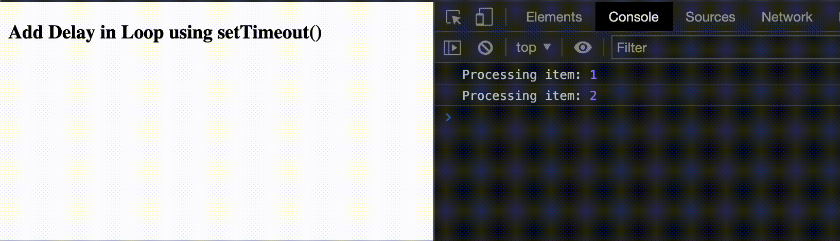 <h3>Add Delay in Loop using setTimeout()</h3>