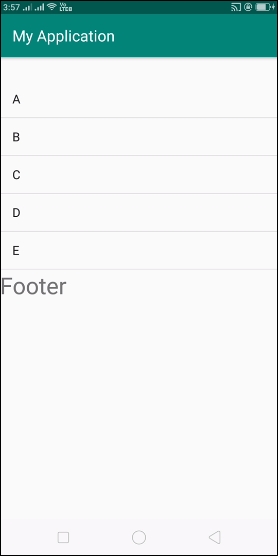 本例說明了如何在 Android listview 中新增頁尾檢視。