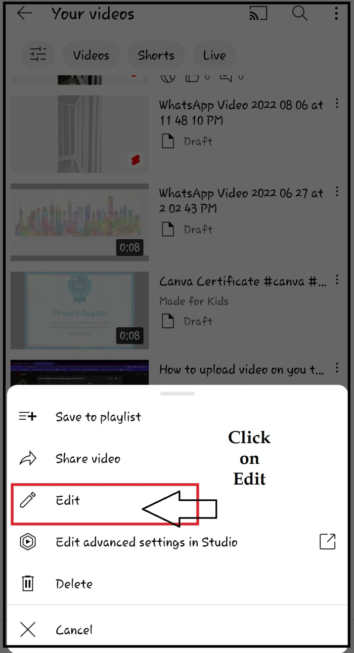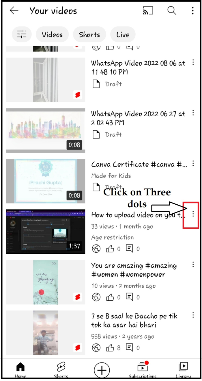 點選你想要新增話題標籤的影片旁邊的三個點。