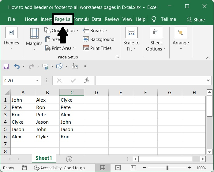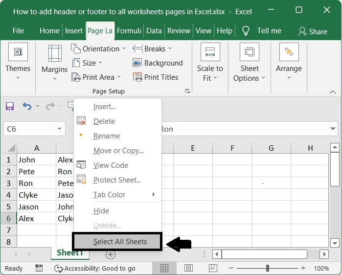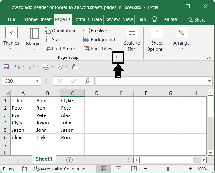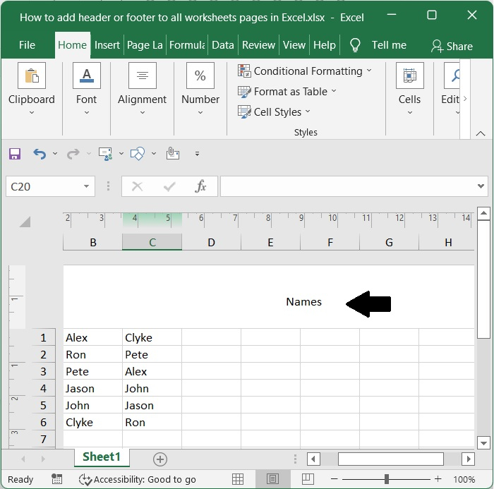 您可以按照以下步驟瞭解如何在 Excel 中向所有工作表新增頁首或頁尾。