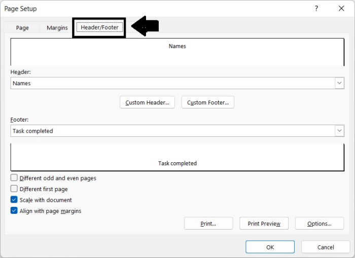 轉到“檔案”,然後選擇“列印”,現在您可以看到頁首和頁尾資訊的預覽,瞭解所有內容的外觀。