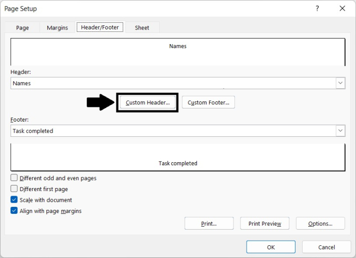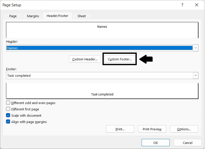 接下來,單擊“**自定義頁尾**”按鈕,如下所示。