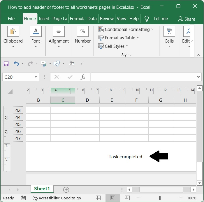 如何在 Excel 中為所有工作表/頁面新增頁首或頁尾?